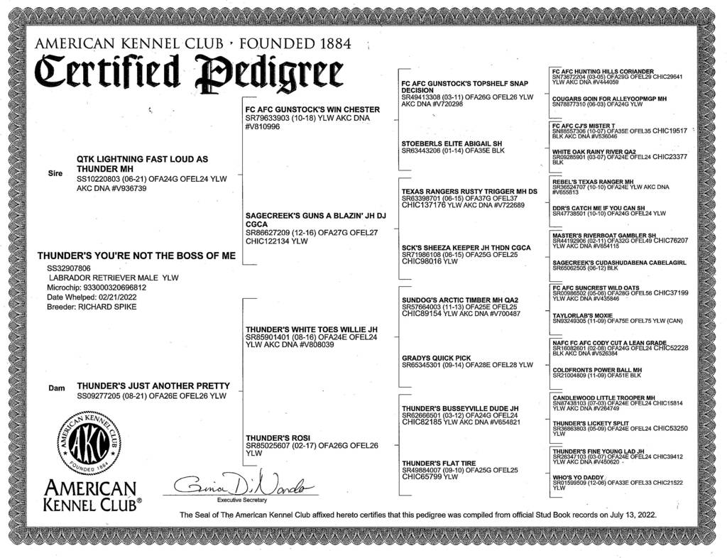 Boss, Son of QTK Lightening Fast Loud as Thunder MH
